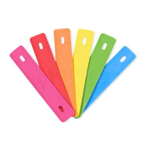 De ene kant van de Binder Buddy heeft een liniaalstructuur, terwijl de andere kant vier verschillende texturen biedt: grote bobbels, kleine bobbels, lange lijnen en pijlen. Je kunt hem draaien, buigen, kauwen of gewoon met je vingers langs de texturen gaan.