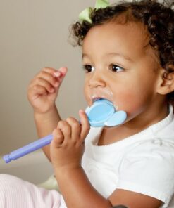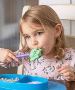 ✔ Helpt bij sensorische integratie – Vermindert textuuraversie door de oren als lepel te gebruiken bij voedingsintroductie.