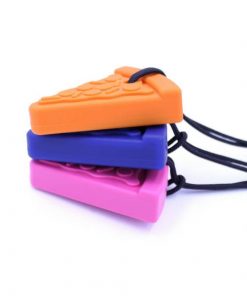 Om nom nom! De ARK’s Therapeutic bijtketting Pizza is een stukje zintuiglijke pret. Elke “slice” meet 5 cm lang, 4,5 cm over het breedste deel en (inclusief de “toppings”), net iets minder dan 1 cm dik. Het is een geweldige optie voor kinderen en jong volwassene die liever kauwen met hun voortanden. Doordat de “toppings” op de pizza liggen bieden deze extra zintuiglijke input. Gebruik de Pizza als een veilig alternatief voor kauwen op potloden, shirts, vingers, enz. en om te kalmeren, focussen en voor zelfregulatie.
