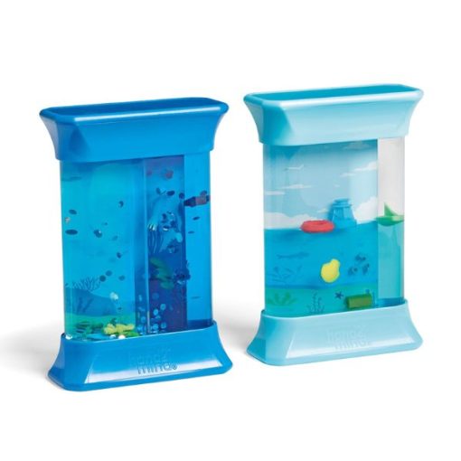De Sink & Float Bottle zit vol oceaandiertjes en objecten die óf zinken óf blijven drijven, waardoor kinderen spelenderwijs inzicht krijgen in het concept van drijfvermogen. De Fast & Slow Bottle laat zien hoe vloeistoffen met verschillende dichtheden bewegen, waarbij zeediertjes op hun eigen tempo door de fles glijden.