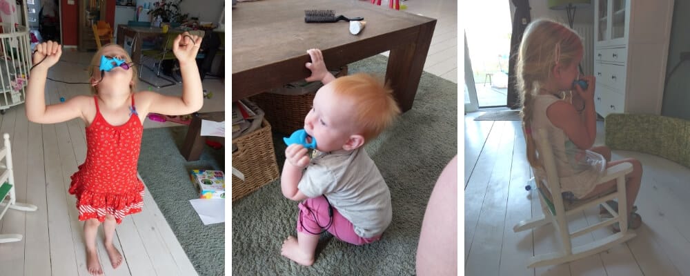 Onze oudste dochter K. (5 jaar) heeft eigenlijk altijd al een flinke kauwbehoefte gehad en we hebben gemerkt dat zij tot rust komt als ze één van haar bijtkettingen of speeltjes gebruikt.