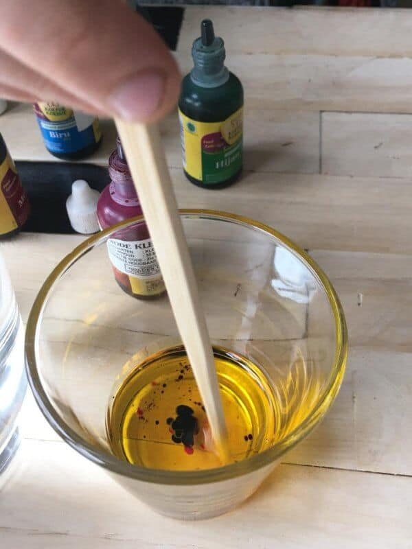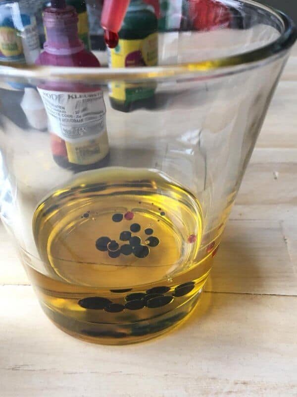• Hierin druppel je wat verschillende kleuren kleurstof