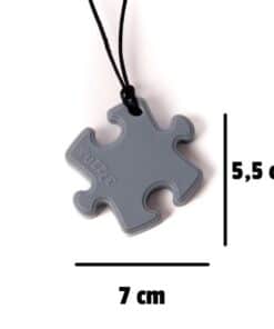 Stoere en stevige bijtketting in de vorm van een puzzelstuk. Door het formaat geschikt voor kinderen met een stevige kauwbehoefte. Je gebruikt bijtketting puzzel als veilig alternatief van kauwen op haren, nagels en kleding. En door de nopjes aan de achterkant geeft deze ketting nog een extra sensorische ervaring.